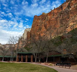 We stayed at the Zion Lodge in the park which was nicer that Bright Angel and nestled up next to a gigantic boulder. After we arrived in the late afternoon Martha went for a short hike while I slept. The next morning I rallied enough for us to take a shuttle up/down the valley - the preferred route. Unfortunately, we didn't have time - nor did my condition allow for - any hiking.