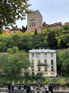 Our day to tour the Alhambra. I had not even heard of it before, but it has to rate as one of the great wonders of civilization. It was orginally built by the Moors and much of its beauty and elegance is from those origins. We took a bus up the long winding roads and I popped for a narration contraption that offered an electronic tour. The structure was originally built as both a fortress and a palace. Whe the Moors were run out of southern Spain, the monarchy progressively added to it, resulting in different layers of influence. By Far, the most impressive part of Alhambra is the landscaping. The buildings and structures are integrated into the gardens in a both beautiful and peaceful balance. At every turn we wanted to take pictures -- to the point of almost not enjoying the moment. This was undoubtedly the highlight of our trip. We spent most of the day there and still hadn't seen it all. Exhausted, we took the shuttle bus back down the hill to the main part of town.