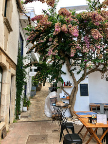 Thursday the 10th - we got breakfast and took a cab over to the Sants train station to pick up the rental car. I had some problems getting situated with the car (wallet/phone) and getting out of the garage. I was very nervous about driving out of a major foreign city in a rental car, but kept telling myself to take it slowly, one step at a time. Eventually I made it down the road, figured out the navigation and got to near Begur. Charming beyond belief. Idyllic white building and hotel on a cove. Very few people and very quiet. We settled in with a dinner at the hotel and then walked around the homes - mostly dark and quiet.