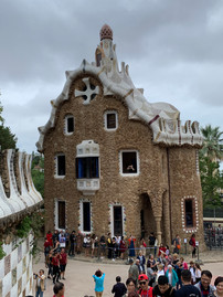 We had tickets to the Park Guell, so meandered up Grand Via and had a repast at an outdoor place on Catalunya. A lot of upscale shops - very charming with architecture that reminded us of Paris. A Latin version of it. At Alfonse X stop we took a bus up to Park Guell. Lots of mosaics and an interesting story; essentially a Gaudi development — but hordes of tourists and difficult to really enjoy the artwork.